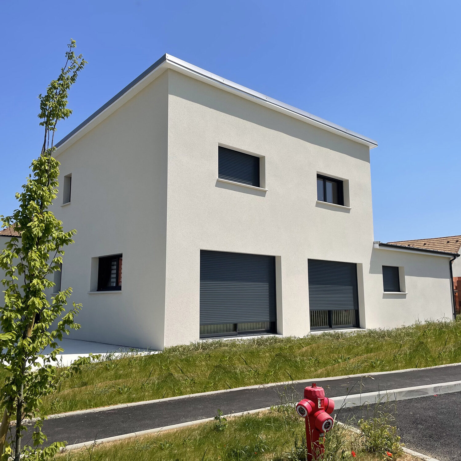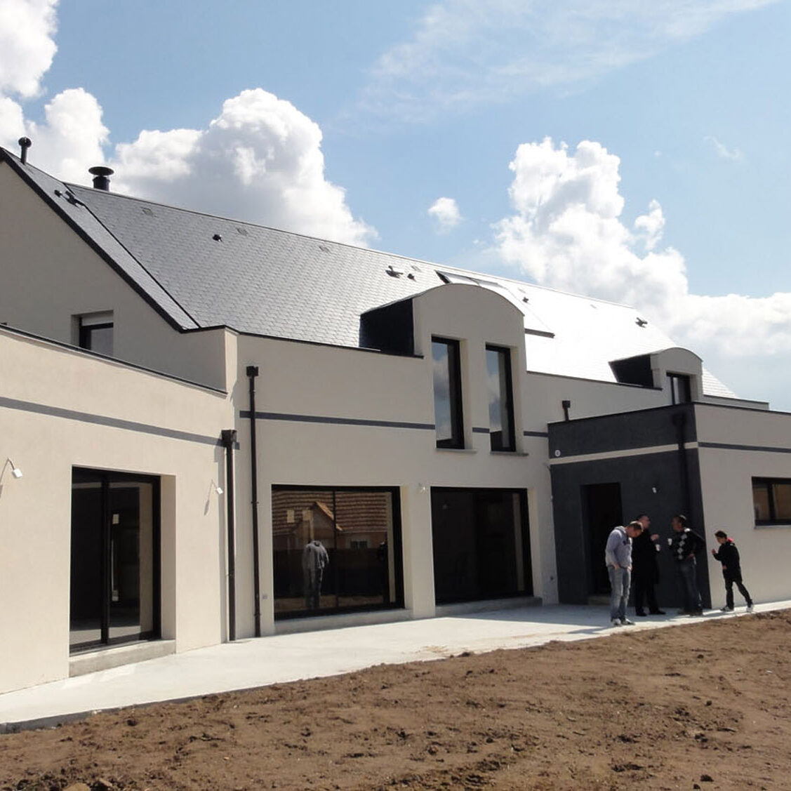 Couverture du R+1 en monopente bac acier, partie avant et casquette sur entrée en EPDM.