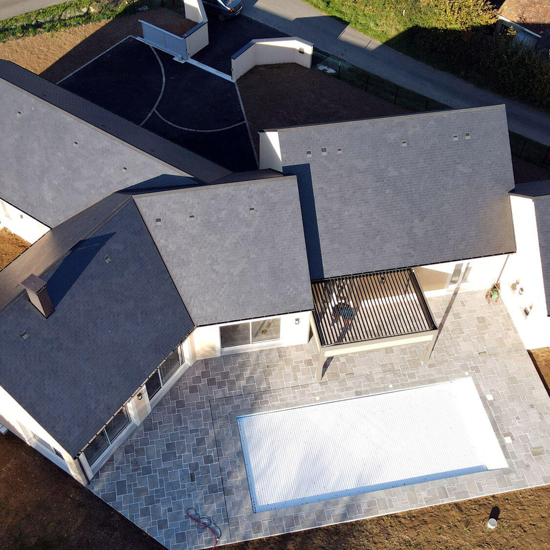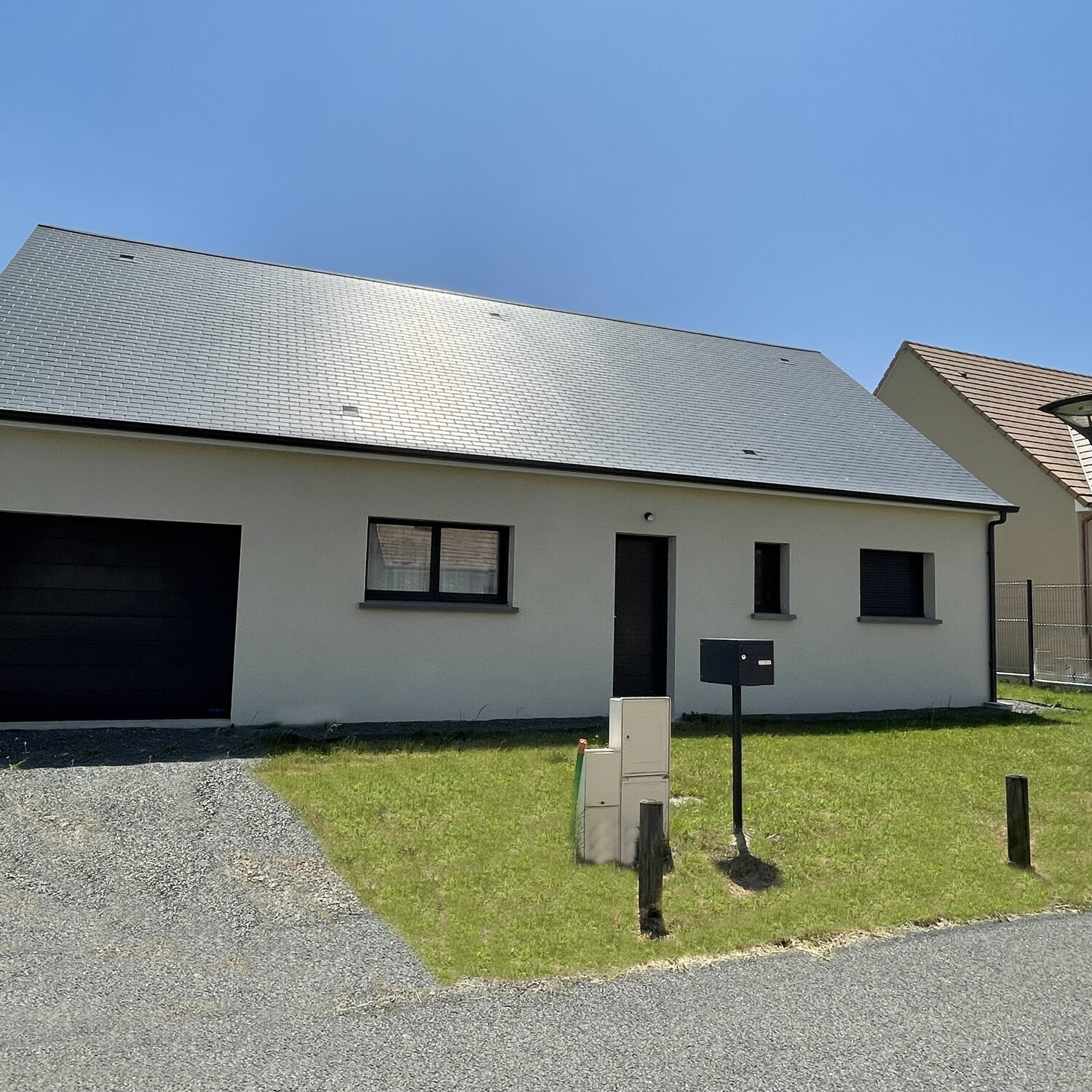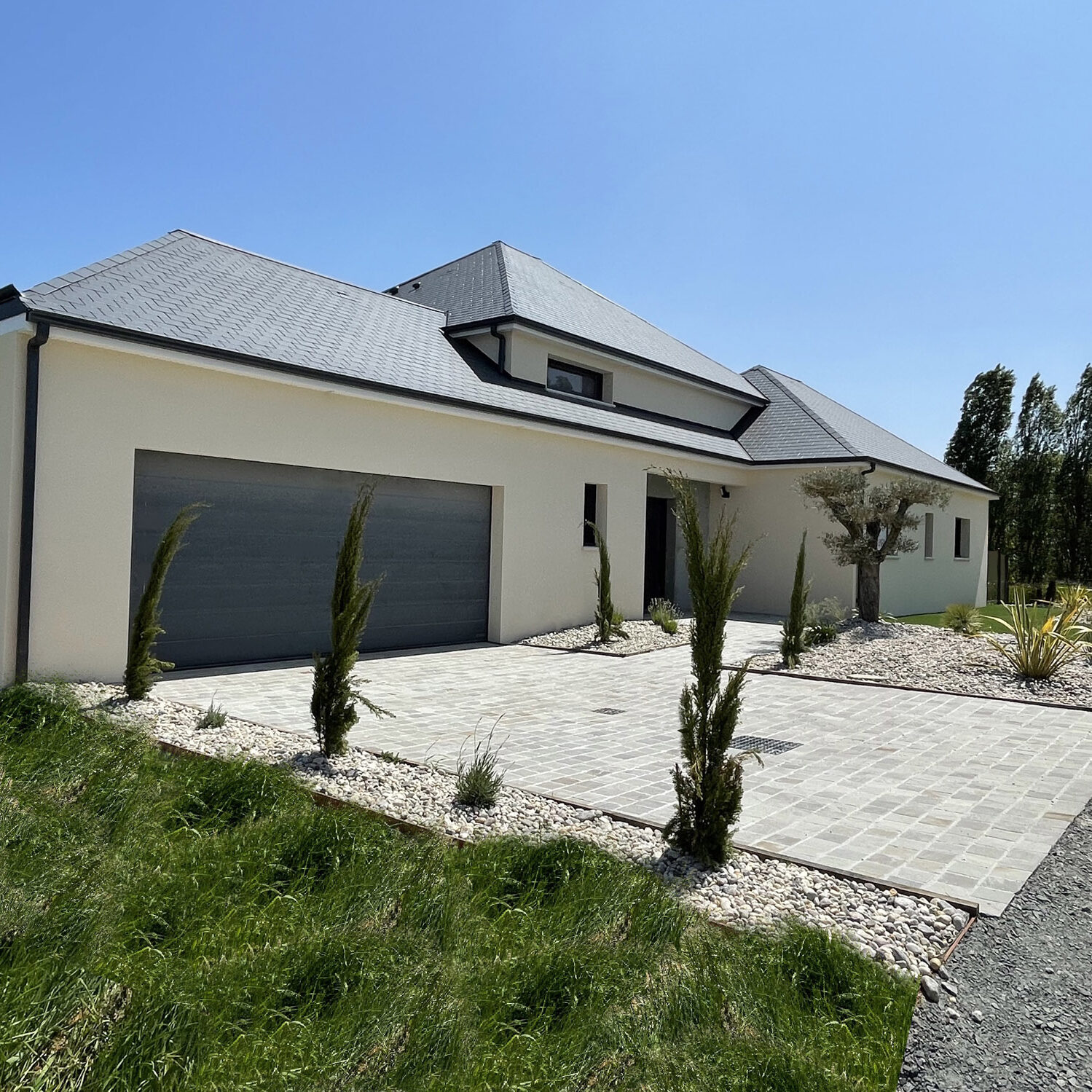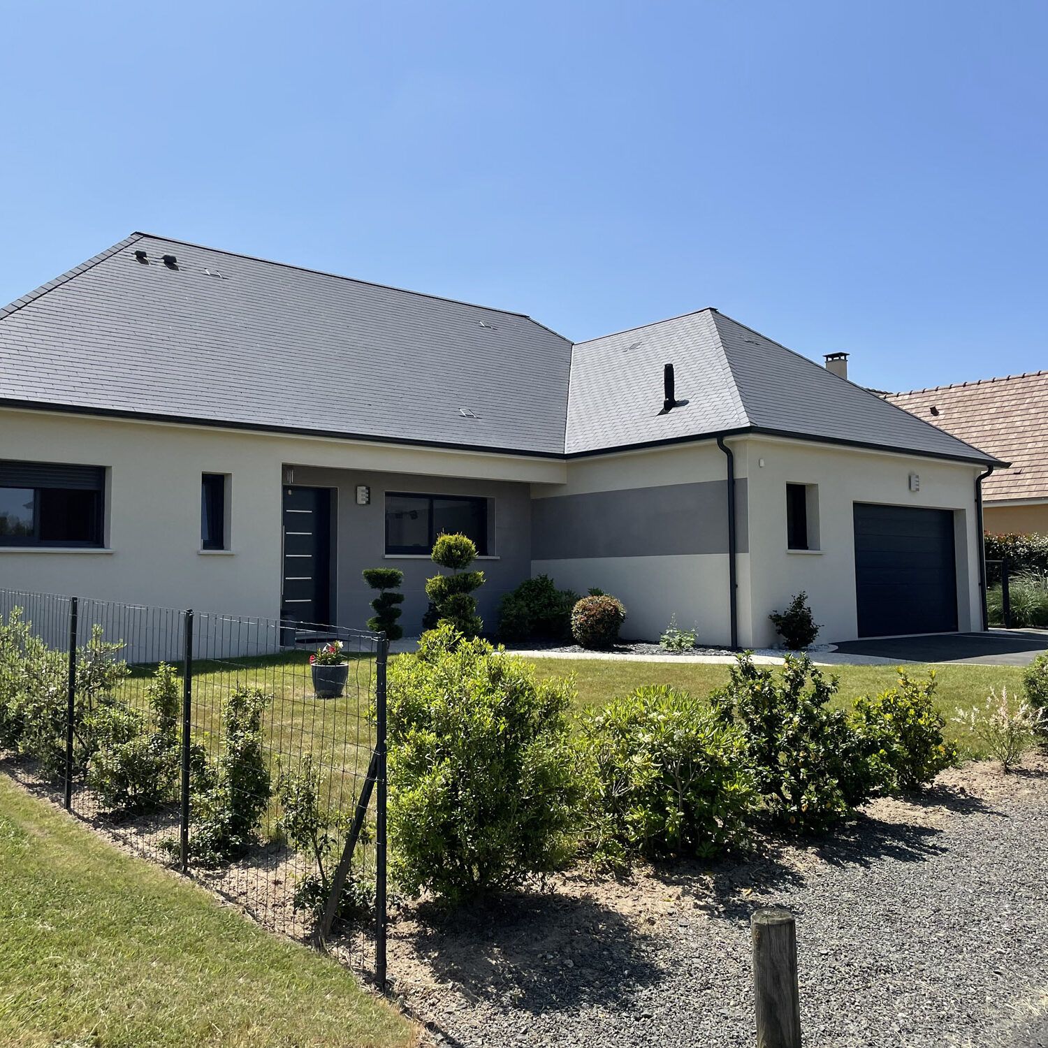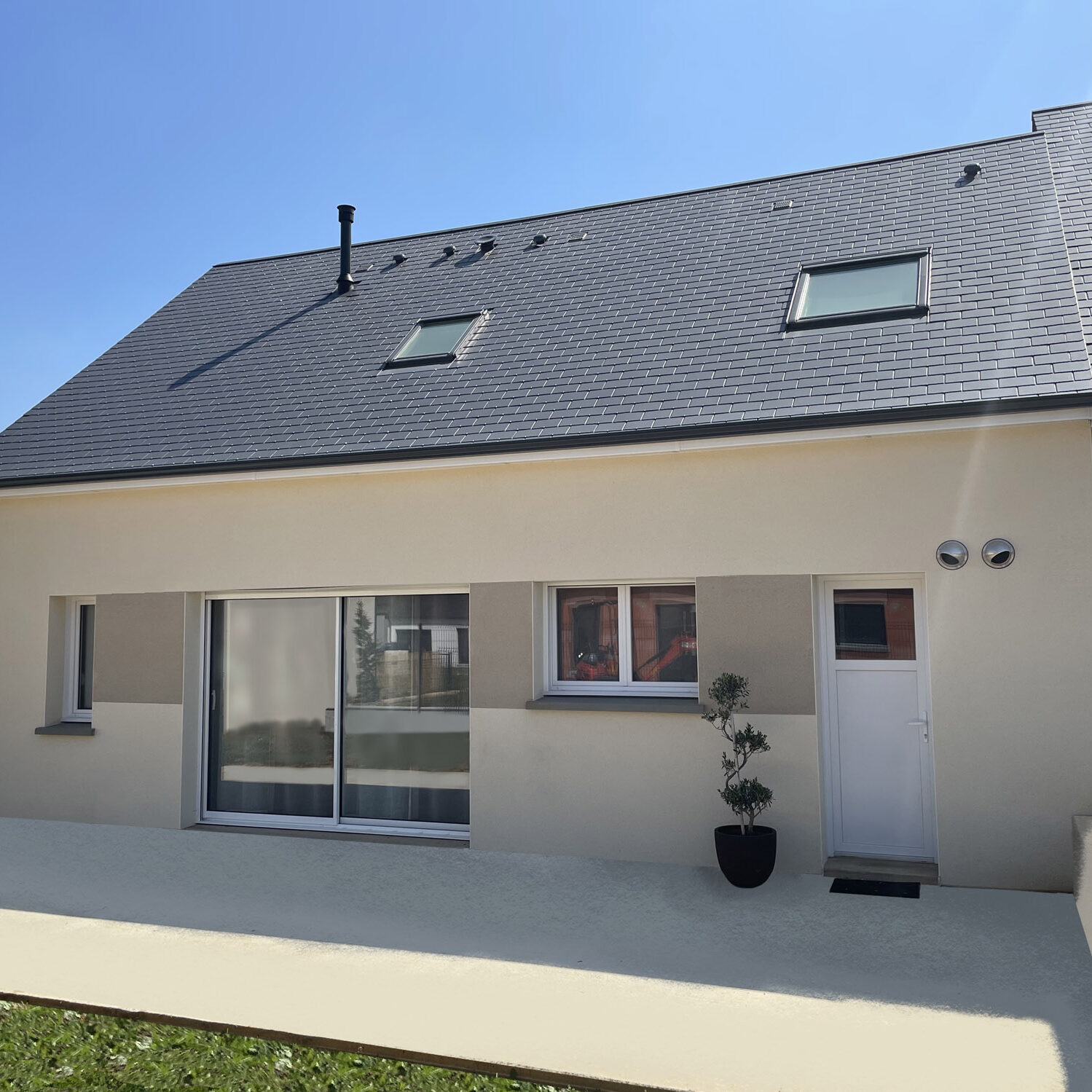 Maison de plain-pied, Couverture en ardoise KERGOAT, Menuiseries en gris anthracite RAL 7016 Enduit ton pierre grisée. Partager cette référence Partager sur FacebookPartager sur Facebook Share on XPartager sur X Partager sur PinterestPartager sur Pinterest Partager sur LinkedInPartager sur LinkedIn Partager sur WhatsAppPartager sur WhatsApp