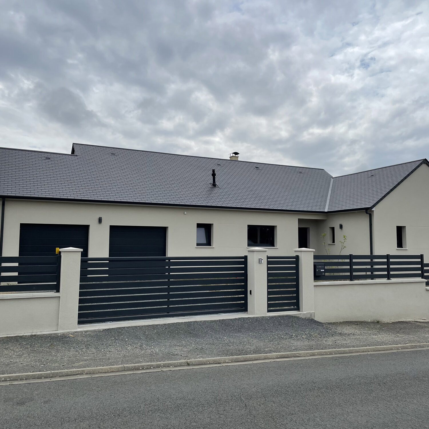 Enduit ton sable avec des encadrements d’ouverture blanc.